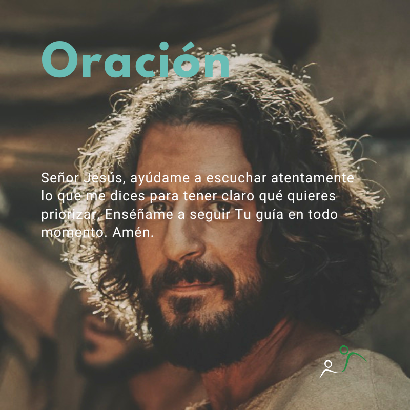 Señor Jesús, ayúdame a escuchar atentamente lo que me dices para tener claro qué quieres priorizar. Enséñame a seguir Tu guía en todo momento. Amén.
