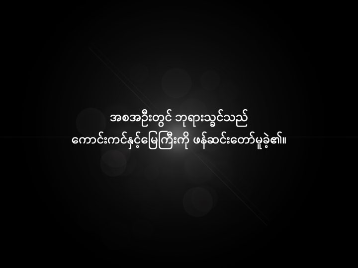ဘယ်လိုလူအပေါင်းတို့ကိုစတင်ခဲ့တာလဲ ကျနော်တို့အဘယ်အရပ်ကလာသနည်း အဘယ်ကြောင့်ဤမျှလောက်ဒုက္ခကမ္ဘာပေါ်မှာရှိသလော မည်သည့်မျှော်လင့်ချက်ရှိပါသလော ဘဝသေသောနောက်ရှိပါသလား? သငျသညျကမ်ဘာ၏ဤစကားမှန်သမိုင်းကိုဖတ်ပြီးအဖြစ်အဖြေကိုရှာပါ။