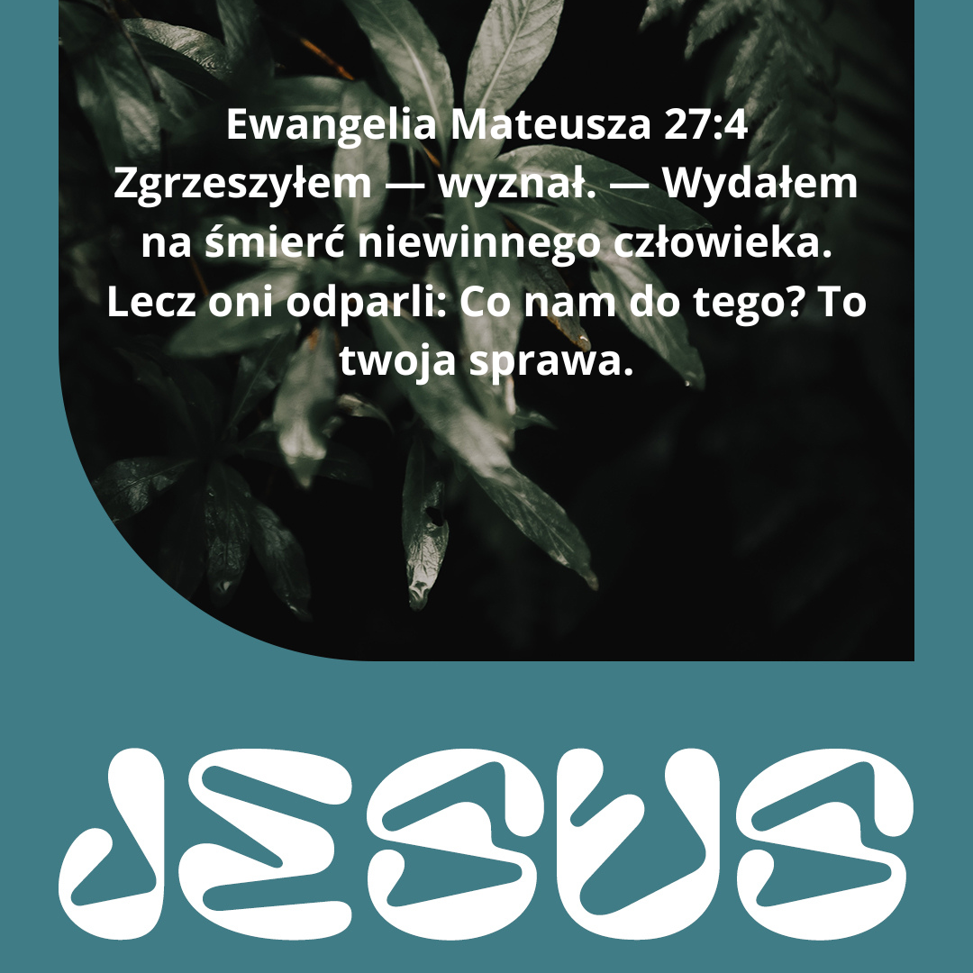 Odrzucony przez apostołów, odrzucony przez Arcykapłanów, zostawiony sam sobie na pastwę wyrzutów sumienia, popełnia samobójstwo. A wystarczyło zaczekać trzy dni! Wystarczyło stoczyć walkę z własną słabością, pokutować, wytrwać i nie pozwolić Złu zwyciężyć, a już w niedzielę o poranku witałby się ze Zmartwychwstałym Jezusem.