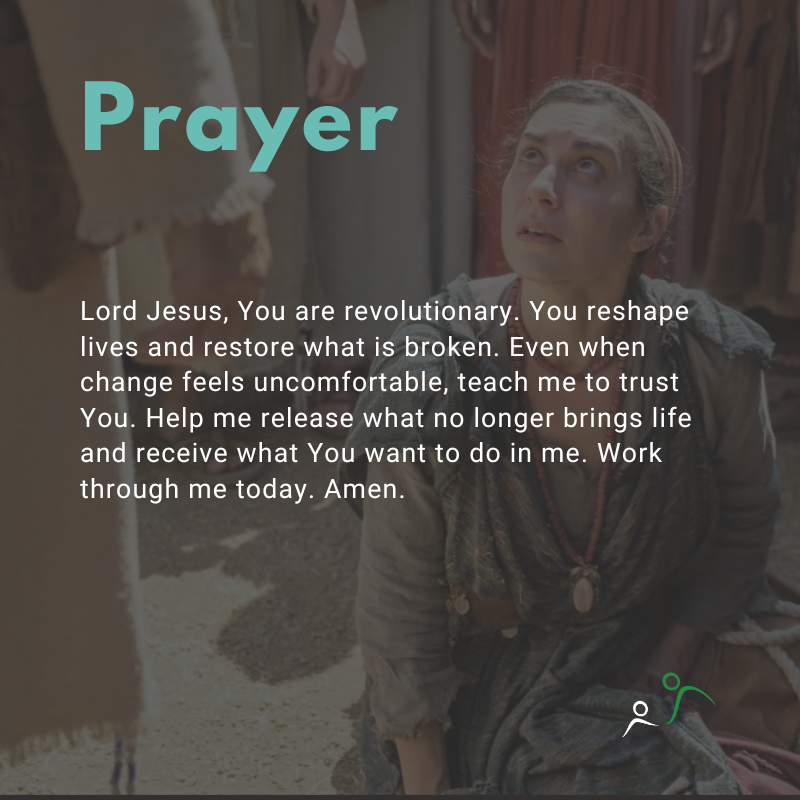 Lord Jesus, You are revolutionary. You reshape lives and restore what is broken. Even when change feels uncomfortable, teach me to trust You. Help me release what no longer brings life and receive what You want to do in me. Work through me today. Amen.