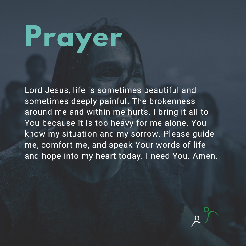 Lord Jesus, life is sometimes beautiful and sometimes deeply painful. The brokenness around me and within me hurts. I bring it all to You because it is too heavy for me alone. You know my situation and my sorrow. Please guide me, comfort me, and speak Your words of life and hope into my heart today. I need You. Amen.