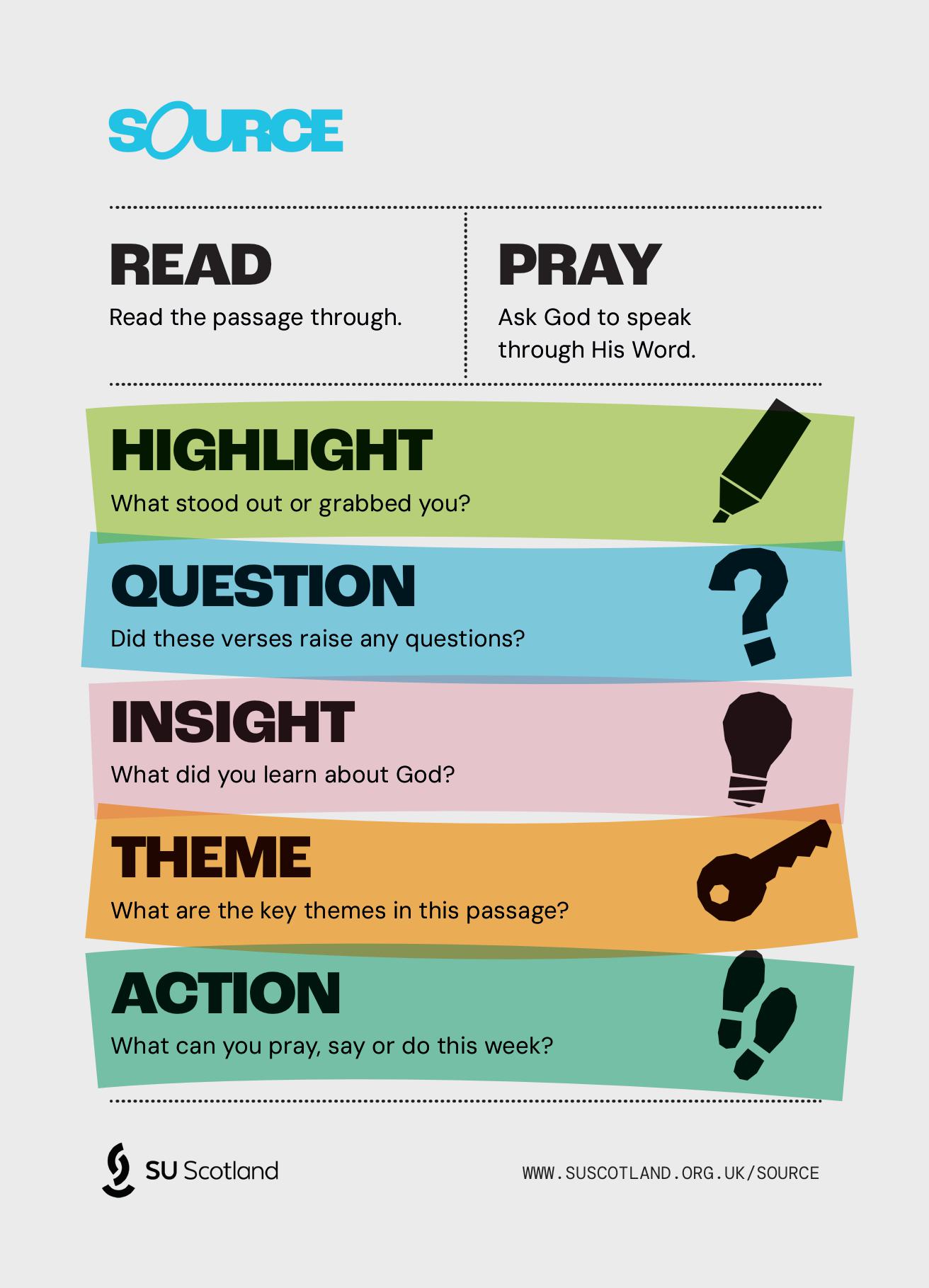 It can surprise us to discover that Jesus used his Bible. He used it to face challenging situations and issues - a lot like the ones we face. This reading plan invites us to journey with Jesus day by day, finding reasons to read the Bible. SU Scotland uses a method called SOURCE to help engage deeply with the Bible and respond personally. Each day you'll find this simple framework set out in the "Devotional" section. Why not use the "Share" function to invite friends to join you on the journey? Then you can "Talk it over" in the app.
