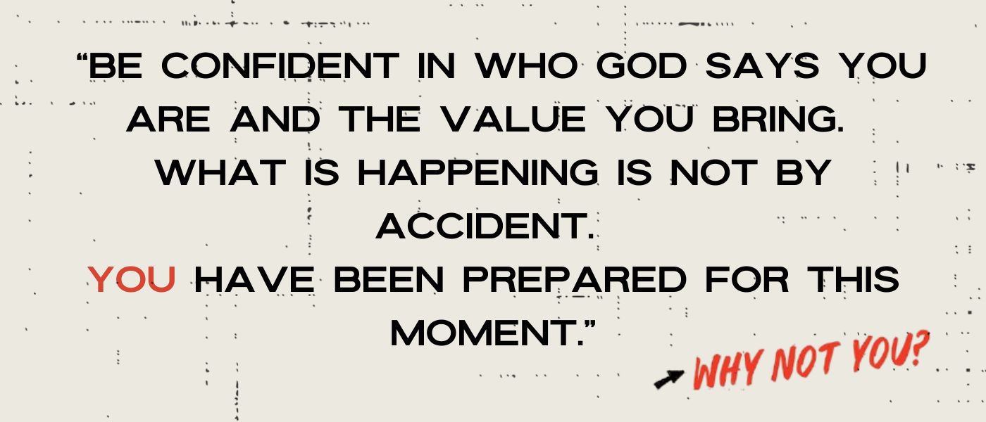 Let God Almighty speak over you: You are enough. You are already chosen, already worthy, already enough. Let the doubts and the insecurities go. This is your time. Be confident in who God says you are and the value you bring. What is happening is not by accident. You have been prepared for this moment.