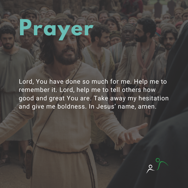 Lord, You have done so much for me. Help me to remember it. Lord, help me to tell others how good and great You are. Take away my hesitation and give me boldness. In Jesus’ name, amen.