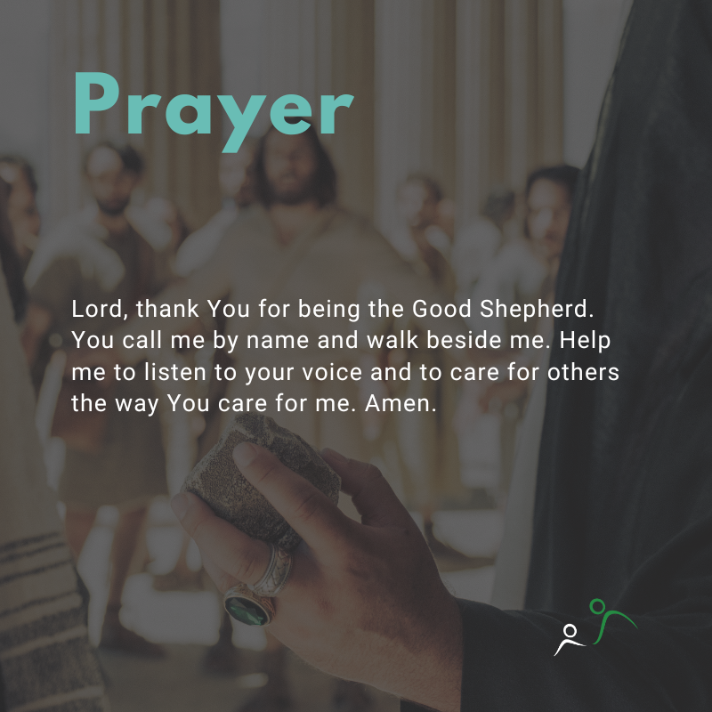 Lord, thank You for being the Good Shepherd. You call me by name and walk beside me. Help me to listen to your voice and to care for others the way You care for me. Amen.