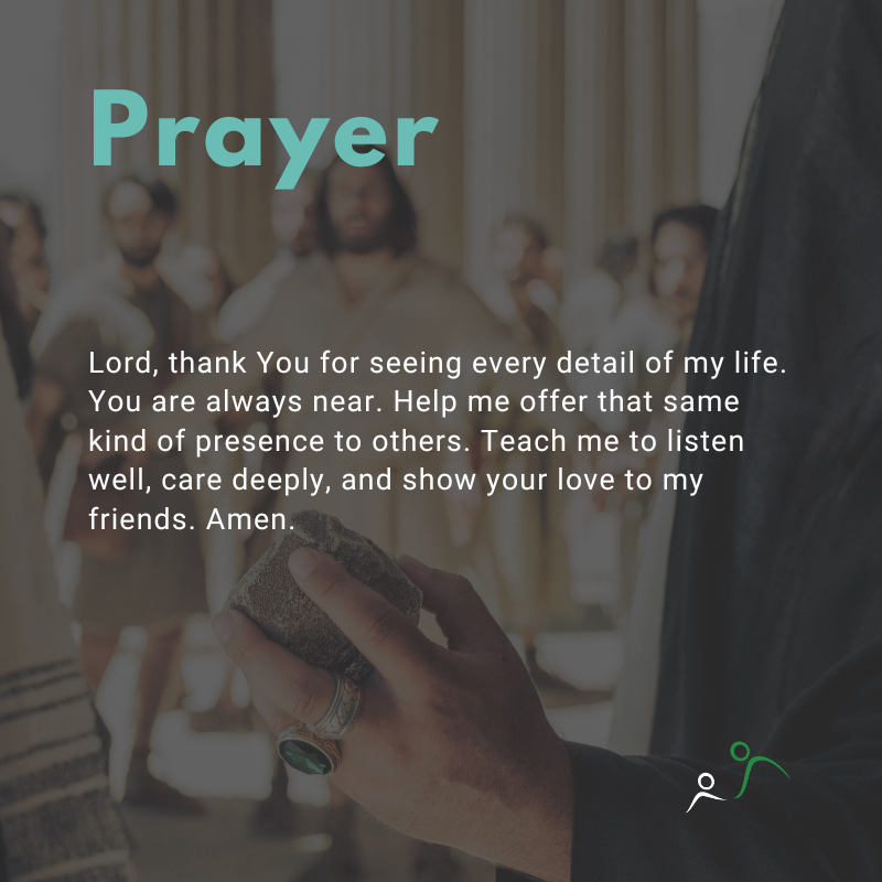 Lord, thank You for seeing every detail of my life. You are always near. Help me offer that same kind of presence to others. Teach me to listen well, care deeply, and show your love to my friends. Amen.