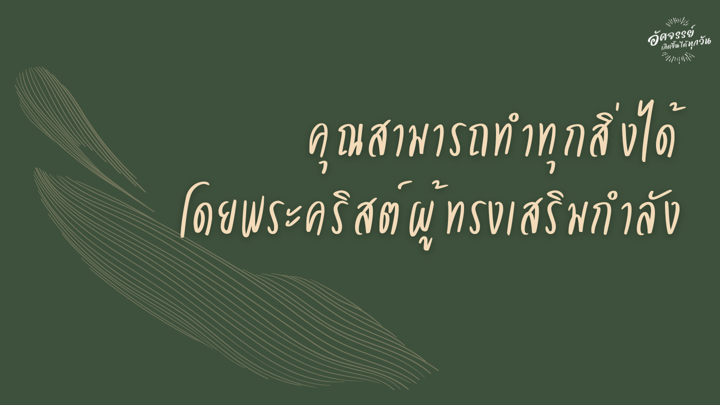 จงเชื่อสิ่งนี้ด้วยสุดใจของคุณ… คุณสามารถทำทุกสิ่งได้โดยพระคริสต์ผู้ทรงเสริมกำลังคุณ