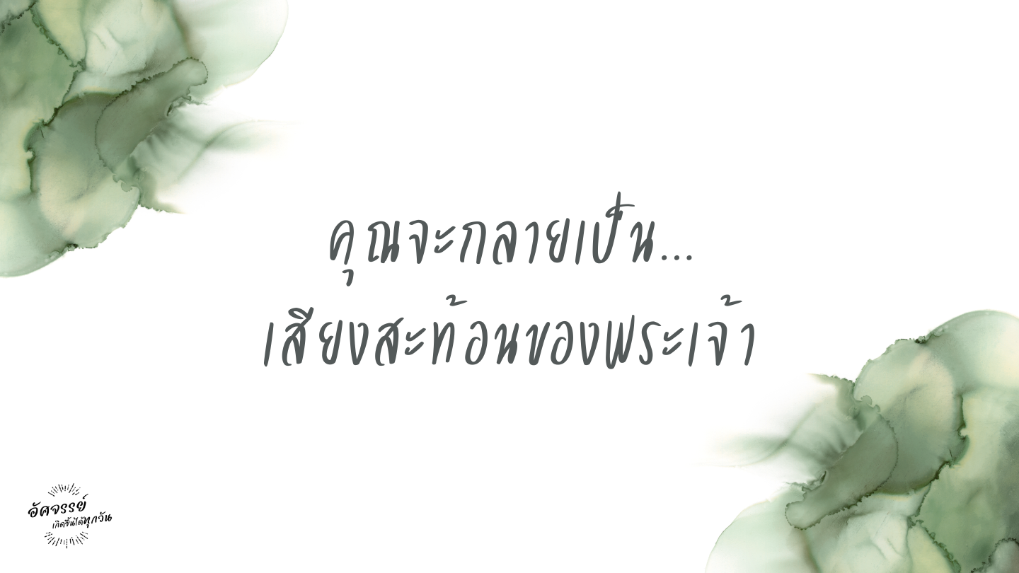 คุณจะกลายเป็นเสียงสะท้อนของพระเจ้า คุณจะสั่นสะเทือนเพื่อพระองค์และเหมือนพระองค์ คุณจะสะท้อนภาพหัวใจของพระองค์ ดังที่ คุณปุ้ยได้เป็นพยาน...